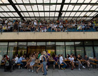 | Mood Der sommerliche Spätnachmittag hat die Heimtribüne energetisch downgradingmäßig fest im Griff. Nur selten kommt Stimmung unter den klassischen Sitzplatzklatschern auf, obwohl die Trachtenfraktion in Punkto Höllenlärm ein infernalisches Exempel statuiert. ![]() |