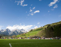 | Stadion Eine Tribüne, dem Berg abgerungen wie ein Lawinenschutzverbau. Hier ist kein Platz für verweichlichte Hosenbrunzer und somit auch kein Bedarf nach Toiletten geschweige den einer Anzeigetafel. ![]() |